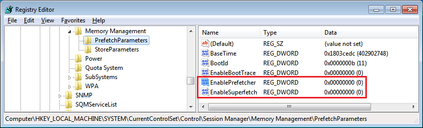 - EnableSuperfetch 為 0
